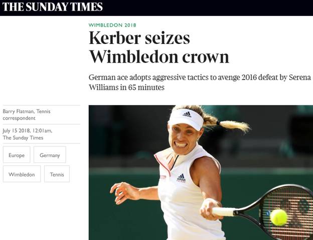 Updated 1811 gmt (0211 hkt) july 2, 2018. Serena rolls into wimbledon final, joining kerber. All england club, wimbledon dates: Serena williams loses 2018 wimbledon final. Serena williams celebrates her win against arantxa rus on the first day of the 2018 wimbledon championships (afp/getty ). But it's also about unfettered excellence. Angelique kerber karolína plíšková simona halep serena williams johanna konta svetlana kuznetsova agnieszka radwańska venus williams madison keys petra kvitová kristina mladenovic anastasia pavlyuchenkova anastasija sevastova barbora strýcová daria. Serena williams, novak djokovic headline wimbledon midterm grades. Serena williams, roger federer, rafael nadal through. 'i am not an idiot'. Wimbledon 2018 on the bbc. Kerber became the first german since steffi graf in 1996 to lift the trophy. Until i read that article.
